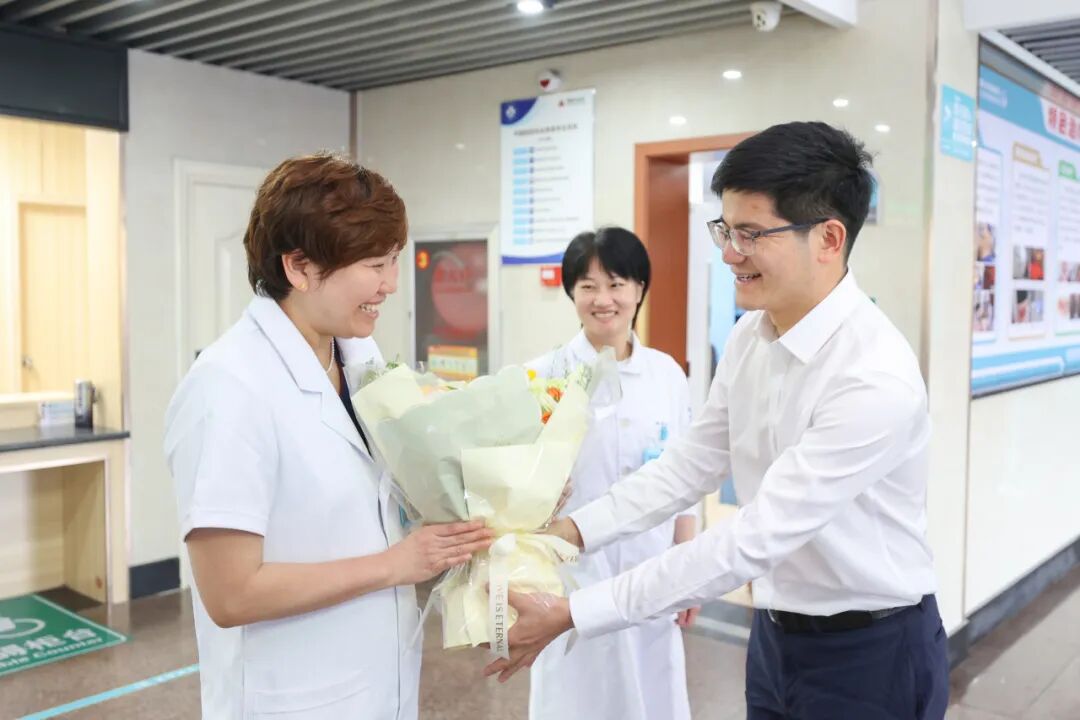 “感謝你們的付出,節日快樂!”慰問組與護理工作者親切交談,細致了解她們的工作和生活情況,對她們堅守崗位、辛勤付出表達了衷心的感謝和崇高的敬意。
