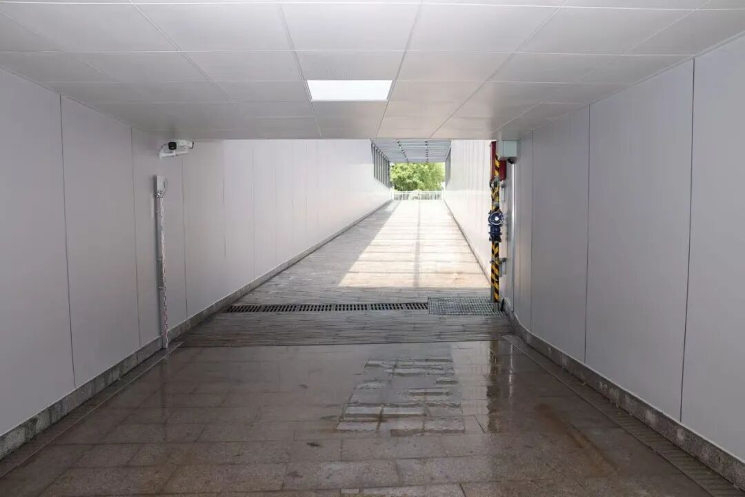 一個(gè)超級(jí)棒的好消息! 經(jīng)過(guò)一系列的精心建設(shè)和籌備, 戴村鎮(zhèn)時(shí)代大道鎮(zhèn)中路下穿通道 將于5月1日正式通行! 讓我們先睹為快吧 通道基本情況 該通道西起鎮(zhèn)中路(戴村鎮(zhèn)初級(jí)中學(xué)北門(mén)東側(cè)),東至錦繡路西伸段(供電所西側(cè)),按照人行及非機(jī)動(dòng)車(chē)推行的需求設(shè)計(jì),全長(zhǎng)約150米,接坡坡道根據(jù)實(shí)際情況,按8%進(jìn)行控制。 ▲通道東側(cè)出入口 ▲通道西側(cè)出入口 其中,下穿G235國(guó)道的箱涵通道寬4米,高2.5米,長(zhǎng)約為57米。東側(cè)箱涵通道長(zhǎng)約15米,接坡“U”槽長(zhǎng)約39米;西側(cè)接坡“U”槽長(zhǎng)約34米。 兩側(cè)坡道上方都設(shè)置了頂棚,頂棚側(cè)面采用花崗巖板與鋼化安全玻璃相結(jié)合,頂面則采用鋼化安全玻璃面層,既美觀(guān)又能提供良好的通行環(huán)境。 除此之外,通道還配備了完善的安全設(shè)施。設(shè)置了水位警報(bào)器與水位提示牌,實(shí)時(shí)監(jiān)測(cè)通道內(nèi)水位情況,遇到積水隱患及時(shí)預(yù)警;同時(shí)安裝攝像頭,實(shí)現(xiàn)通道內(nèi)全方位監(jiān)控,保障行人與非機(jī)動(dòng)車(chē)的通行安全。 通行規(guī)定要牢記 這條地下人行通道旨在為大家提供更便捷、安全的出行體驗(yàn),極大方便了時(shí)代大道兩側(cè)居民的往來(lái)通行,但同時(shí)也有一些通行規(guī)定需要大家嚴(yán)格遵守: 1.禁止機(jī)動(dòng)車(chē)通行。 2.禁止設(shè)置營(yíng)業(yè)攤點(diǎn)或進(jìn)行其他營(yíng)業(yè)性活動(dòng)。 3.禁止在墻壁、地面或公共設(shè)施上涂抹刻畫(huà)。 4.禁止在人行通道內(nèi)夜宿。 5.禁止聚眾打鬧、停留、集會(huì)和其他妨礙通行的行為。