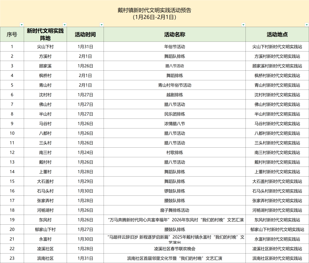 戴村鎮新時代文明實踐活動預告(1月26日-2月1日)