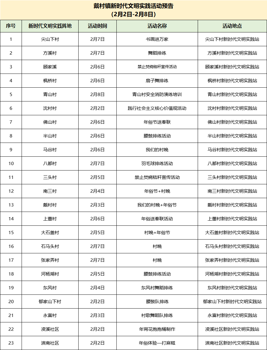 戴村鎮(zhèn)新時代文明實踐活動預告(2月2日-2月8日)
