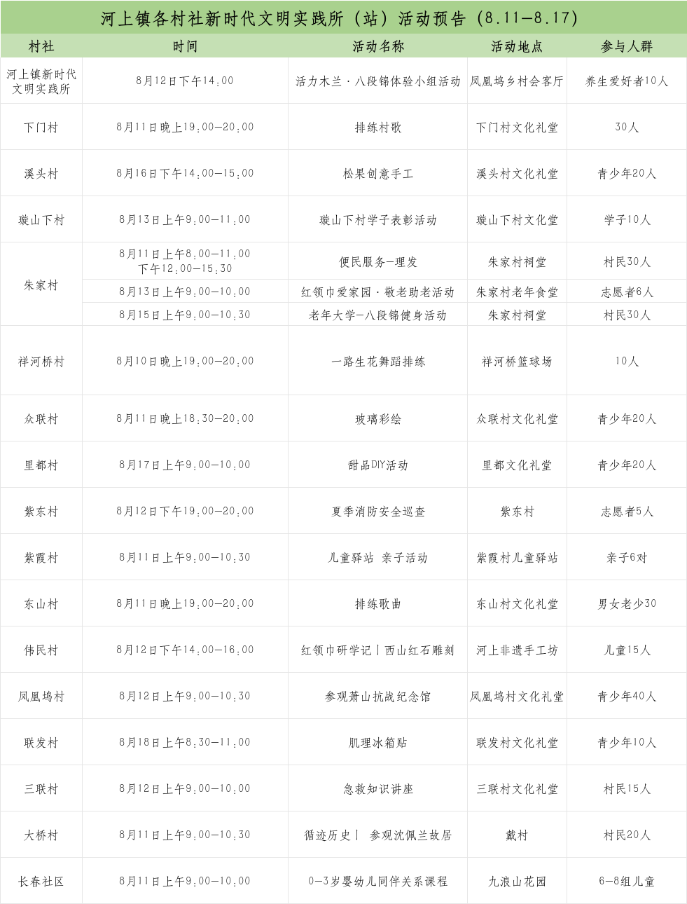 河上鎮新時代文明實踐所(站)活動預告