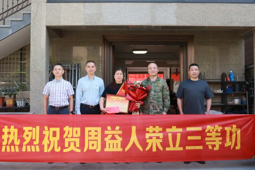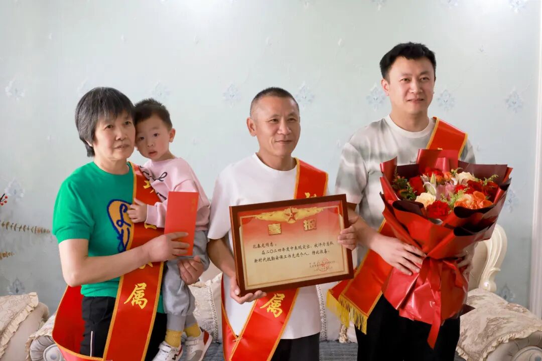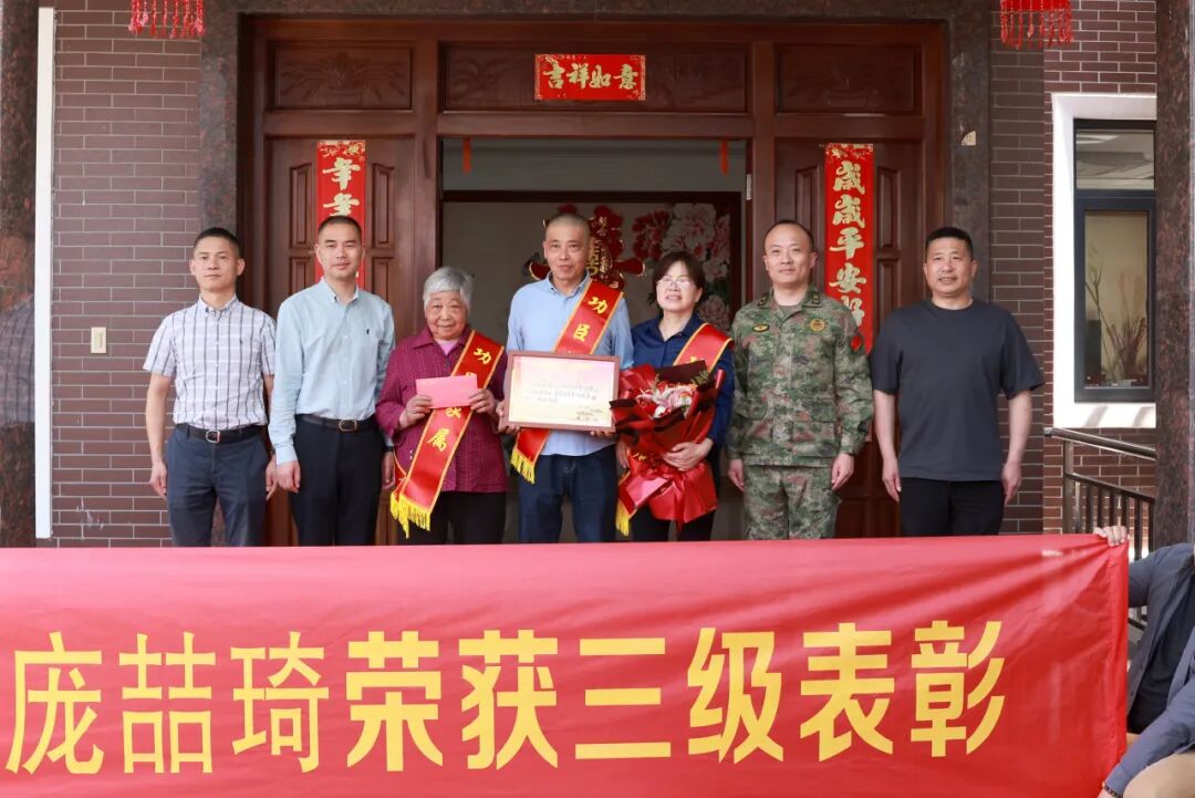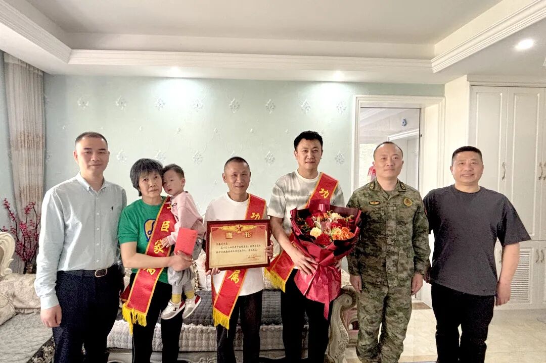 喜報傳溫暖,榮譽催奮進。4月16日,區退役軍人事務局黨組成員、副局長高爾華,鎮黨委委員、人武部長李輝帶隊,為臨浦鎮2024年度立功受獎現役軍人家庭送去喜報,同時送上黨和政府的關懷與祝福。鎮退役軍人服務站相關工作人員等參加。 咚咚咚,鏘鏘鏘……慰問組先后來到三峰村、大莊村、南江村、臨一村,在鑼鼓聲中為立功受獎軍人家屬佩戴綬帶、送上喜報、鮮花和慰問金,并對四位同志在部隊取得的榮譽表示熱烈祝賀。 接過喜報的軍屬們對子女在部隊的出色表現倍感欣慰和光榮,紛紛表示感謝部隊的培養和政府的關懷,將一如既往支持孩子安心服役,鼓勵孩子再立新功。 慰問組關切詢問軍屬的身體狀況及生活近況,并對軍屬的付出給予了充分肯定,感謝他們為部隊培養了優秀的人才,希望他們一如既往地支持家人矢志軍營,繼續做現役軍人堅強的后盾。 周益人 家住臨浦鎮三峰村,在2024年度工作中表現突出,獲平時個人三等功(服務保障情形)。 龐喆琦 家住臨浦鎮大莊村,獲2024年度軍事訓練先進個人。 孔春龍 家住臨浦鎮南江村,2024年度工作成績突出,給予新時代執勤安保工作先進個人。 魯寶 家住臨浦鎮臨一村,在2024年度工作中成績突出,獲戰備訓練三等功。 一紙喜報,承載軍人使命擔當;一份榮譽,彰顯家國情懷。接下來,臨浦將持續做好擁軍優屬工作,進一步增強軍人軍屬的獲得感和幸福感,激勵更多有志青年投身軍旅,為國防建設貢獻力量。
