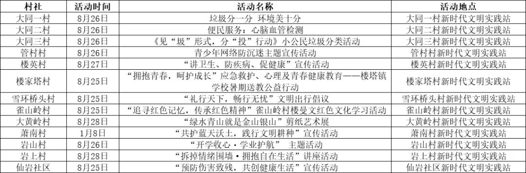 新時代文明實踐活動預告(8.25—8.31)