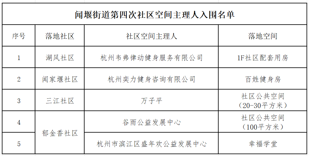 為積極響應社區共建共享的理念,聞堰街道社區空間主理人項目根據部分社區空間的服務和運營的需求,順利開展了第四次評審活動,現將成功入圍聞堰街道首批“社區空間主理人”的名單予以公示(名單排名不分先后): 本次公示,公示期為5個工作日,公示時間為2025年5月14日至2025年5月20日止,若對入圍項目有異議,可在公示期內以書面形式向蕭山區人民政府聞堰街道辦事處提出復核申請。 地址:蕭山區湘湖路3368號 聯系電話:0571-82300101 相關材料請使用真實姓名和準確的地址,以機構名義反映的須加蓋機構公章。 杭州市蕭山區人民政府聞堰街道辦事處 2025年5月14日