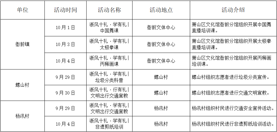 衙前鎮新時代文明實踐活動預告【9月29日-10月5日】