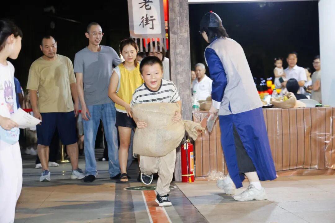運河畔,江寺公園內,“剪影運河”“戲韻運河”“詩意運河”等環節,讓運河“潮”文化在燈火里生機盎然;“老街劇本殺”“纖夫拉力賽”等游戲環節,重現昔日漕運場景,穿越時空限制,讓游客在穿越千年的場景中感受歷史文化。