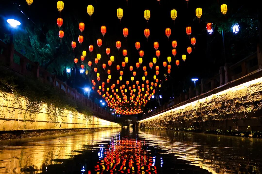 今年國慶假期,城廂舉辦“運河潮·年輕漾”2025“尋夢城河”運河文化藝術周,蕭山城河上,七座古橋燈照古今,兩岸燈籠高掛,一派熱鬧景象。