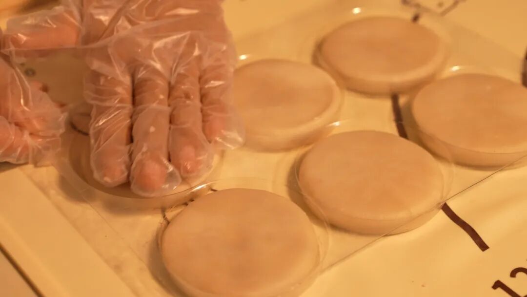 放入模具輕輕按壓,圓餅初成