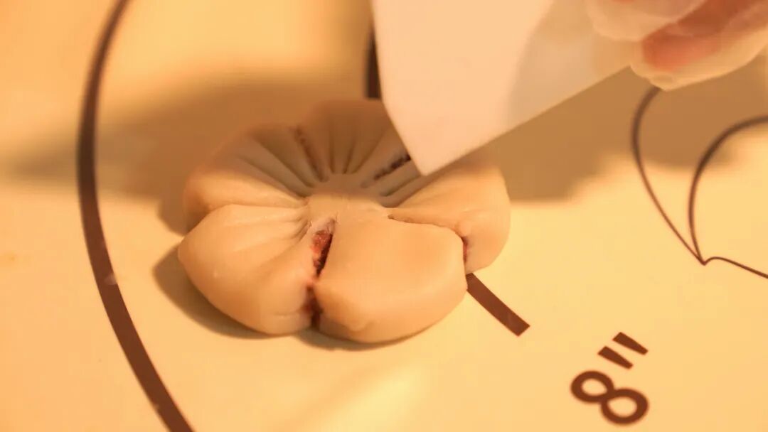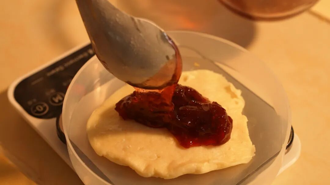 填入玫瑰醬,收口捏合