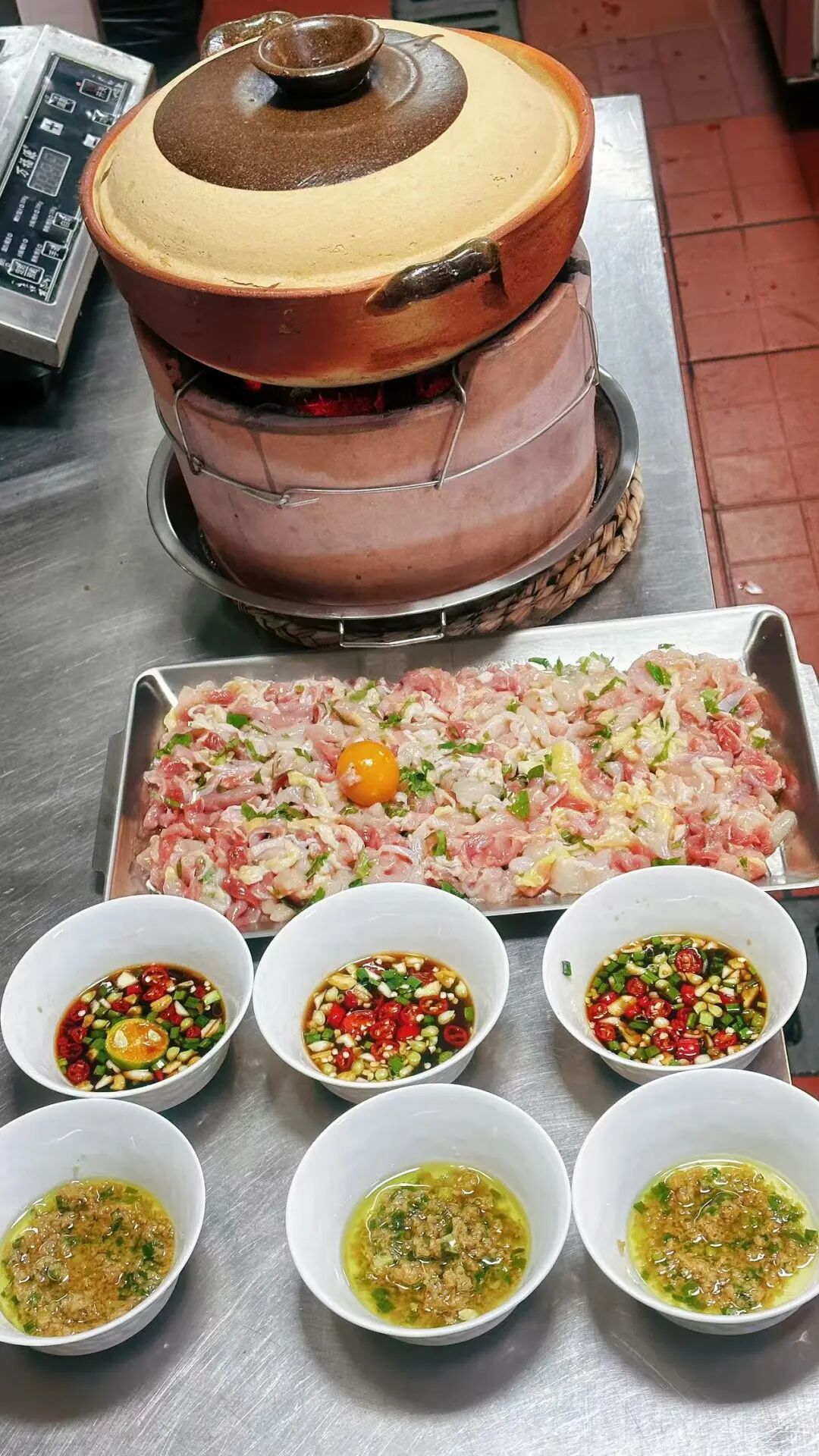踏入店內(nèi),視線會(huì)先被那燈火通明的開放式明檔所牢牢吸引。這不是后臺(tái),而是食材的舞臺(tái)。